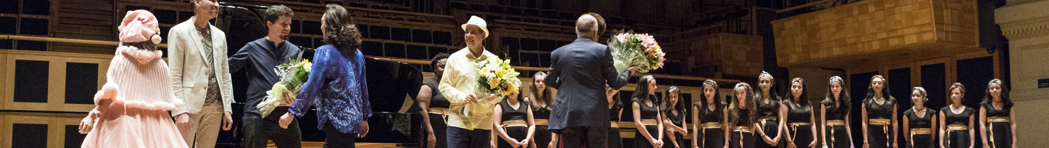 Dr. Yokio Oshiro, presidente da Aliança Cultural Brasil-Japão, abre o espetáculo e enaltece os 110 anos da imigração japonesa. Foto: Edson KumasakaVideo projeções enriqueceram o espetáculo. Foto: Edson KumasakaO Coral Meninas Cantoras de Campos do Jordão, com regência de Mere Oliveira se apresenta juntamente com o pianista Fábio Caramuru Foto: Edson KumasakaOs três apoiadores do Concerto, Dô Cultural (representado por Julynha Toys), Aliança-Cultural Brasil-Japão (representado pela senhora Toshimi Hirano, esposa do diretor professor Sedi Hirano ) e Restaurante Kinoshita (representado por Marcelo Fernandes) entregam flores aos músicos.Os músicos sendo aplaudidos de pé pela plateia. Fotos: Edson KumasakaRepresentantes da comunidade nipo-brasileira prestigiando o concerto (da esquerda para a direita): Carlos Fujinaga (conselheiro daAliança Cultural Brasil-Japão), dr. Roberto Nishio (presidente da Fundação Kunito Miyasaka), Yokio Oshiro (presidente Aliança Cultural Brasil-Japão), o pianista Fábio Caramuru), Harumi Goya (presidente da Sociedade Brasileira de Cultura Japonesa e Assistência Social), casal Sedi e Toshimi Hirano (Aliança Cultural Brasil-Japão), Masaru Susaki (diretor geral da Fundação Japão) Foto: Edson KumasakaSessão de autógrafos Foto: Edson KumasakaJojoscope dando o recado !!! Foto: Edson Kumasaka