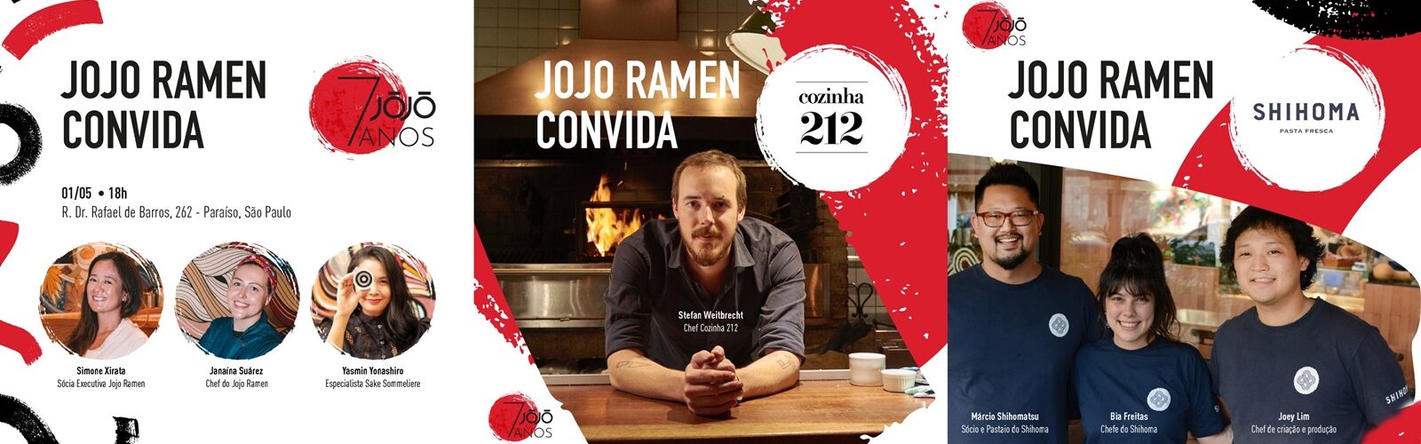 O evento de aniversário de 7 anos começa às 18 horas do dia 1º de maio (segunda-feira) e se estende até as 22 horas. O local do evento é na Unidade do Jojo Ramen no Paraíso: Rua Rafael de Barros, 262. Neste dia, o Jojo Ramen e o Jojo Lab funcionarão no almoço somente até as 14 horas.