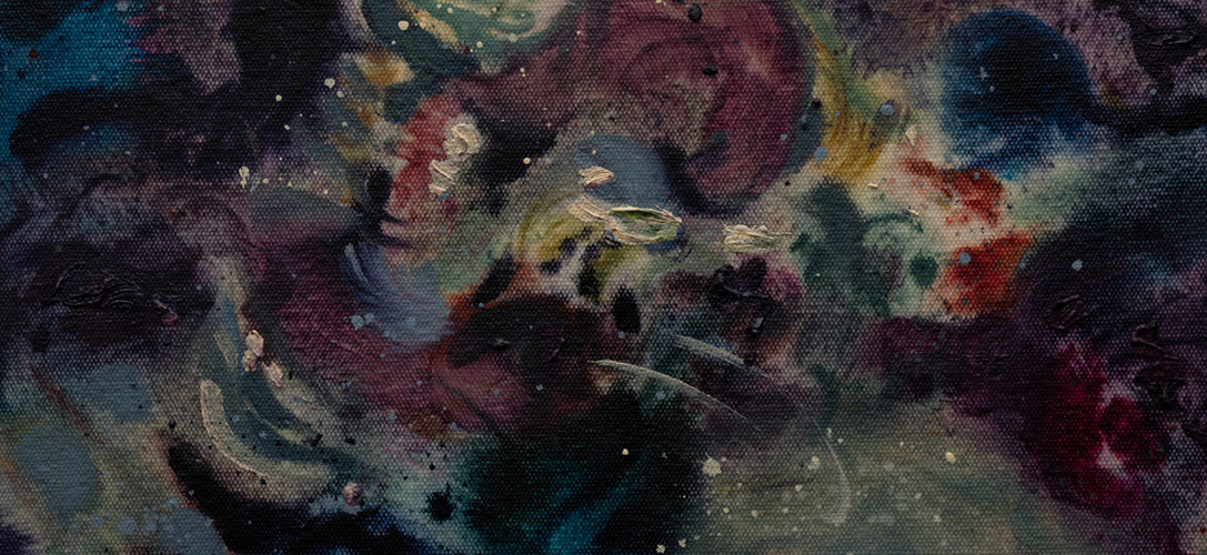 De suas raízes na ciência, as pinturas metamorfoseiam-se em ficção científica. Aprofundando-se em reflexões sobre natureza e espiritualidade, Takahashi evoca os contos de Izanagi e sua esposa, Izanami: duas divindades que desempenham um papel crucial na cosmogonia do xintoísmo japonês. Antes que essas divindades se dedicassem a solidificar e moldar o mundo, narram os japoneses que o cosmos era feito unicamente de água salgada. Usando uma lança para agitar o vasto oceano, o casal divino provocou a emergência da primeira ilha, Onogoro, bem como de várias outras que compõem o arquipélago japonês, trazendo à superfície tudo o que estava submerso. Nas obras aqui apresentadas, em que o domínio técnico da tinta dissolvida é fusionado a uma compreensão da manipulação densidade da tinta a óleo, há uma oscilação na dinâmica Yin–Yang, dualidade típica de sua obra: vida, natureza e paisagem são convocadas pela palavra; contudo, Takahashi as submerge de volta na turbidez de suas pinceladas, envolvendo-as em um ambiente subaquático. No reflexo turvo deste meio, as formas convidam o espectador a fazê-las reaparecer na superfície pelo ato da imaginação.